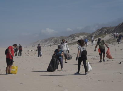 Sociedade Voluntários recolheram lixo na Praia do Samouco, na Marinha Grande 27 set 2020 Acção promovida no âmbito do Dia Internacional da Limpeza Costeira.