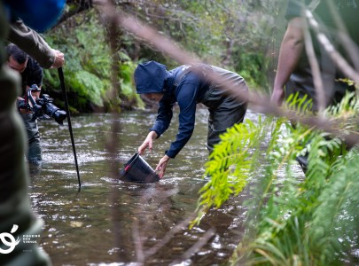 Trutas criadas no posto aquícola de Campelo libertadas na Rigeira de Alge, em Figueiró dos Vinhos